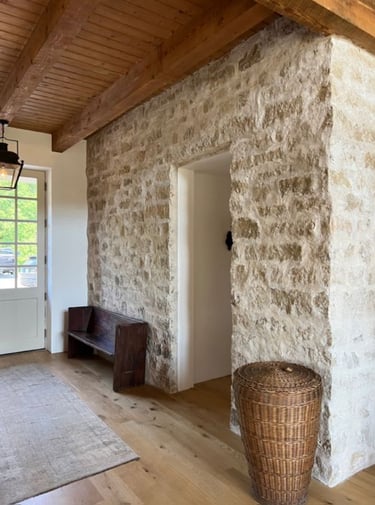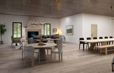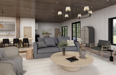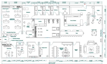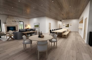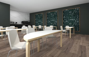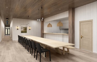 The main community hub building at Little Blue Cabins is designed to provide everything a healthcare and educational facility would require. We want it to be 'home' for the residents, and creating it to be a beautiful space will go a long way towards instilling a sense of dignity and pride. We are confident that the residents will want to keep it this way. The warm earth tones and textures are all part of providing a non-clinical environment and helps to create that 'homey' atmosphere for the people that will be living and working there. (Click to enlarge images)