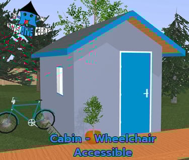 The entire cabin community is designed to be wheelchair/walker accessible, by use of a deck structure that connects all the cabins to the community building. One ramp will be required from the parking lot to the deck, which leads to all the buildings. The deck will eliminate the need for separate ramps and also help with snow removal, etc.