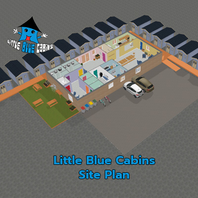 The cabins are designed to be 8'x16', well insulated and locally built. LBC would like to involve local builders, volunteers and students to take part in the construction of the 20 cabins. Each cabin will be alike and include a bed w/storage, a wardrobe, a mini fridge and a microwave.